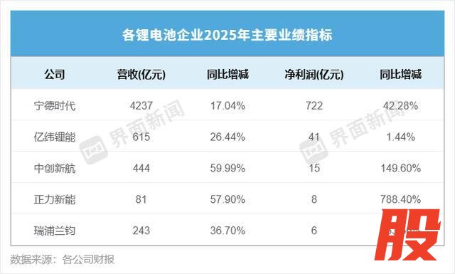 亿纬锂能的战略成效是分裂的。一方面,其规模扩张堪称迅猛:2025年储能电池出货量达71.05GWh,同比增长40.84%,稳居全球第二;动力电池出货50.15GWh,全球排名升至第六。2026年一季度,公司营收和净利润分别同比增长61.61%和31.35%,业绩看似亮眼。