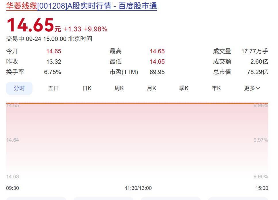 9月24日,华菱线缆(001208.SZ)开盘即封死涨停板,报14.65元/股盈禾配资,市场热情高涨背后,是其前一日发布的重磅收购公告。华菱线缆宣布拟以现金方式收购安徽三竹智能科技股份有限公司(下称"三竹智能")控制权,预计收购价格不超过2.7亿元,旨在通过布局智能连接器领域打造第二增长曲线。